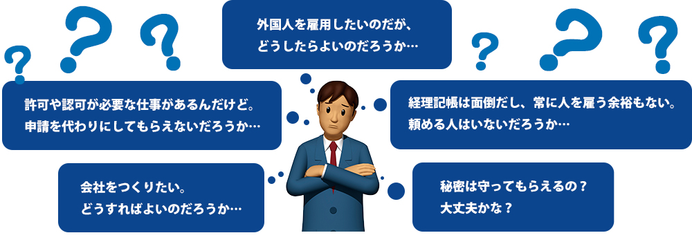 こうした各種許認可申請の手続きや更新管理を代行しています。